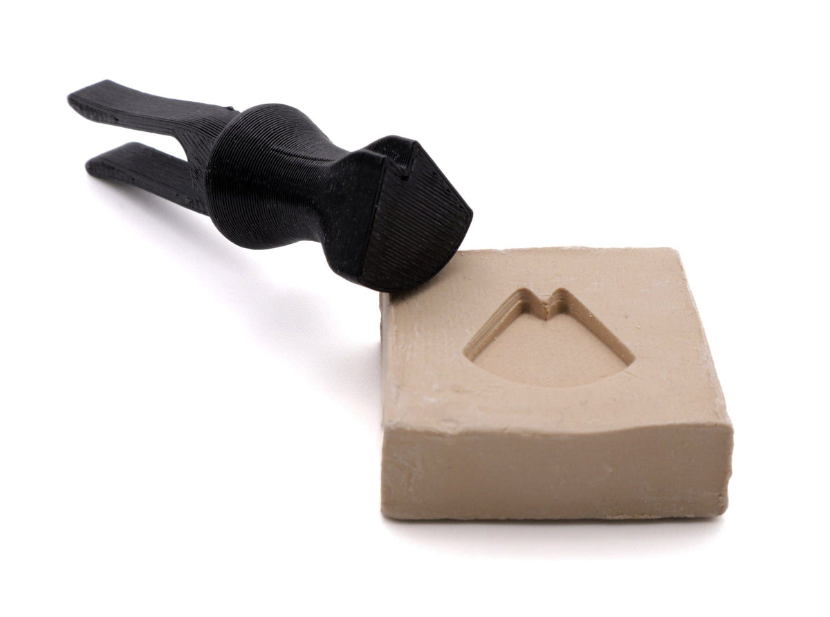 Simply attach the Impression Stamp to a carving tool handle, then use it to accent specific blade grooves or to press repeatable divots into leatherhard clay.