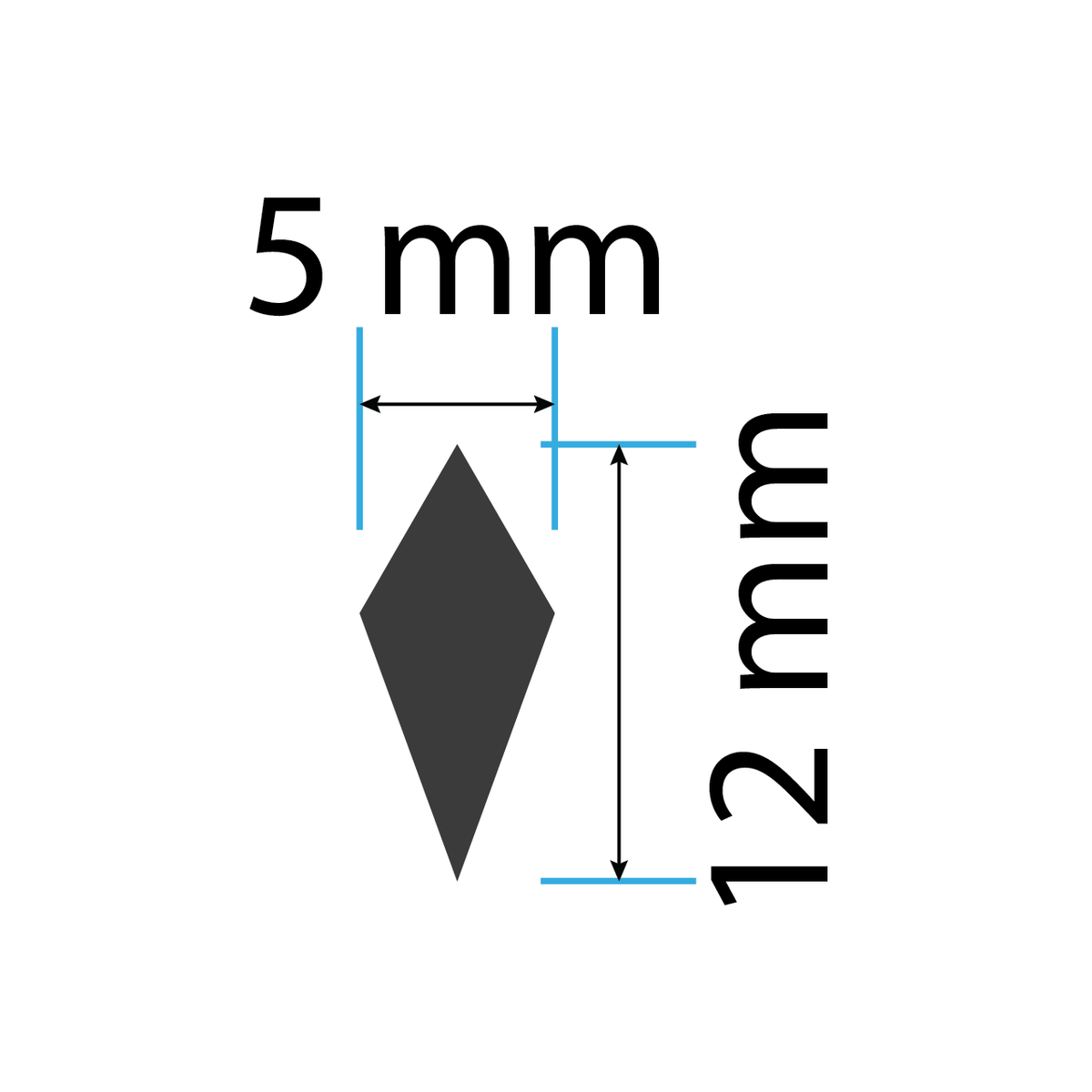 • Impression tip: approximately 12 mm long, 5 mm wide, elongated diamond shape