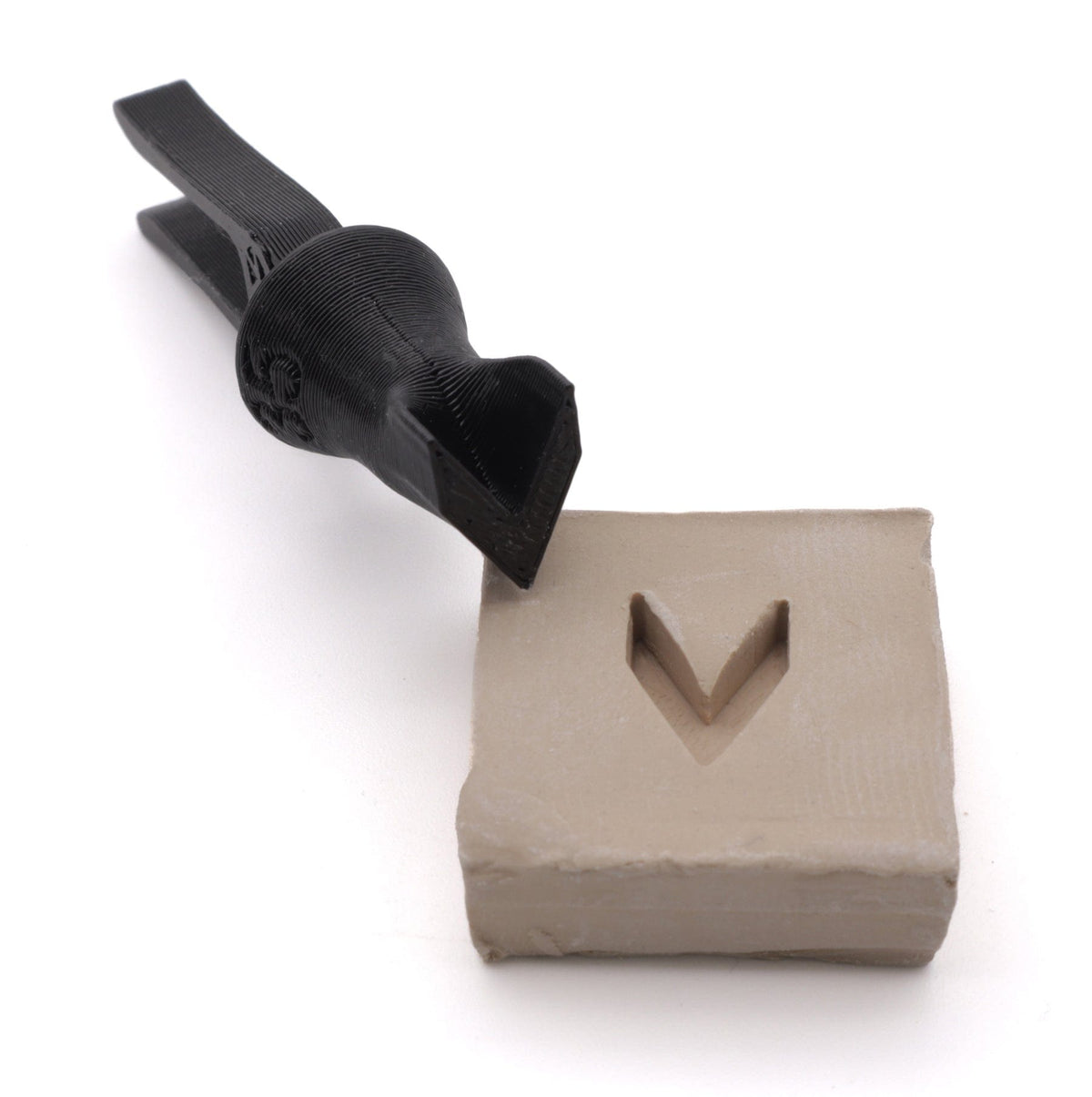 Put your best pottery forward with DiamondCore Tools’ innovative Impression Stamps. Designed to fit the stylus ends of existing DCT clay-carving tools, this 60-degree chevron extends your creative options.