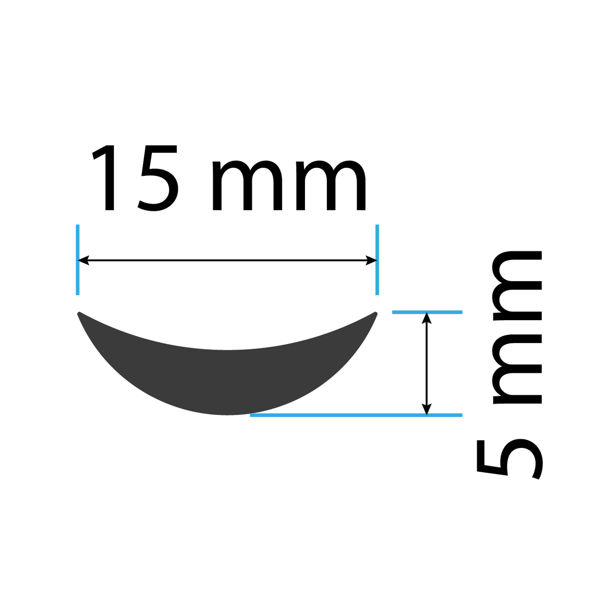 - Impression tip: approximately 5 mm long, 15 mm wide, solid crescent