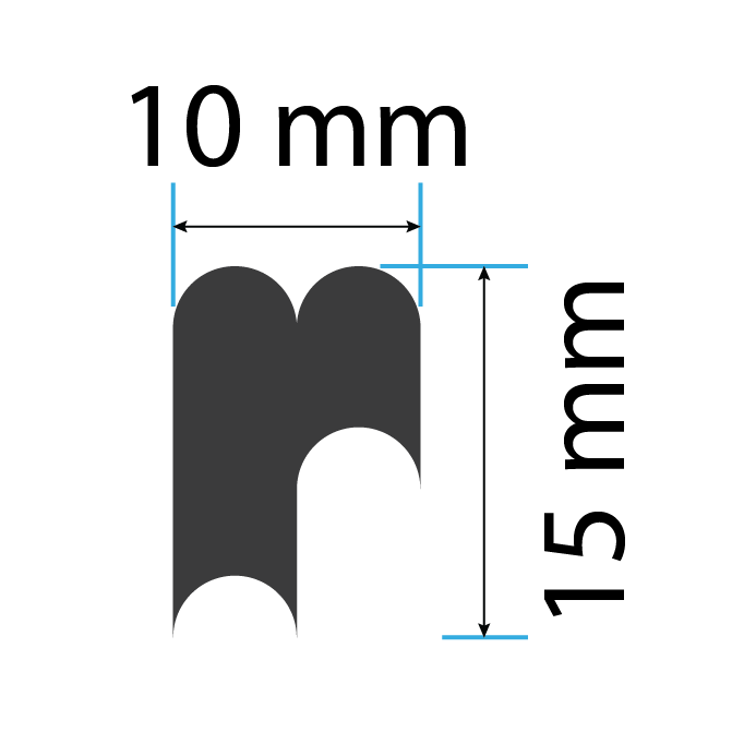 - Impression tip: approximately 15 mm long, 10 mm wide, double rounded columns with inset