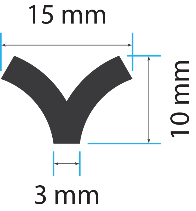 - Impression tip: approximately 3 mm wide, V-shaped line