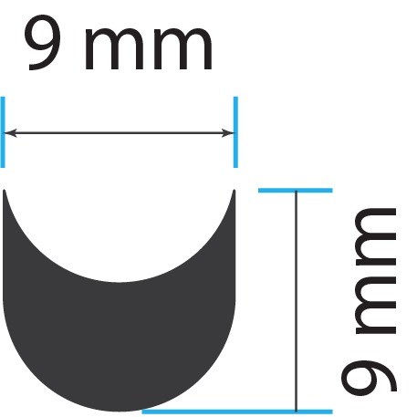 - Impression tip: approximately 9 mm-wide rounded endpoint