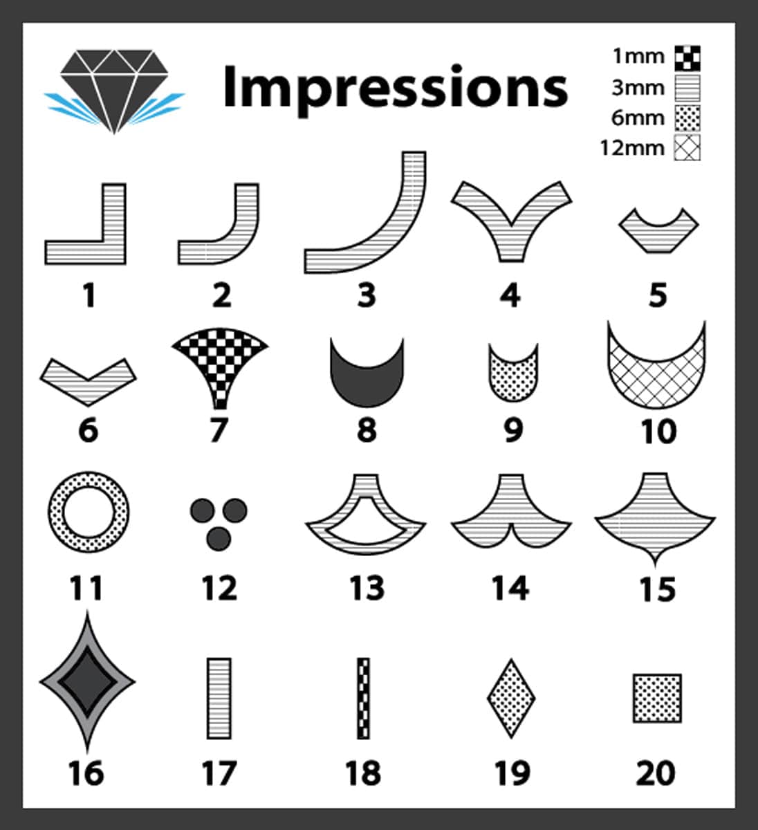 • Includes DiamondCore Tools’ Impression Stamps numbers 1-20