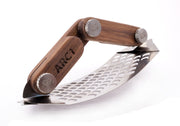 - 4.3-inch (110 mm) hardwood handle, 4.9-inch (125 mm) blade with 74 holes