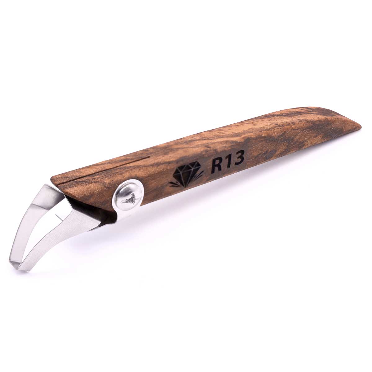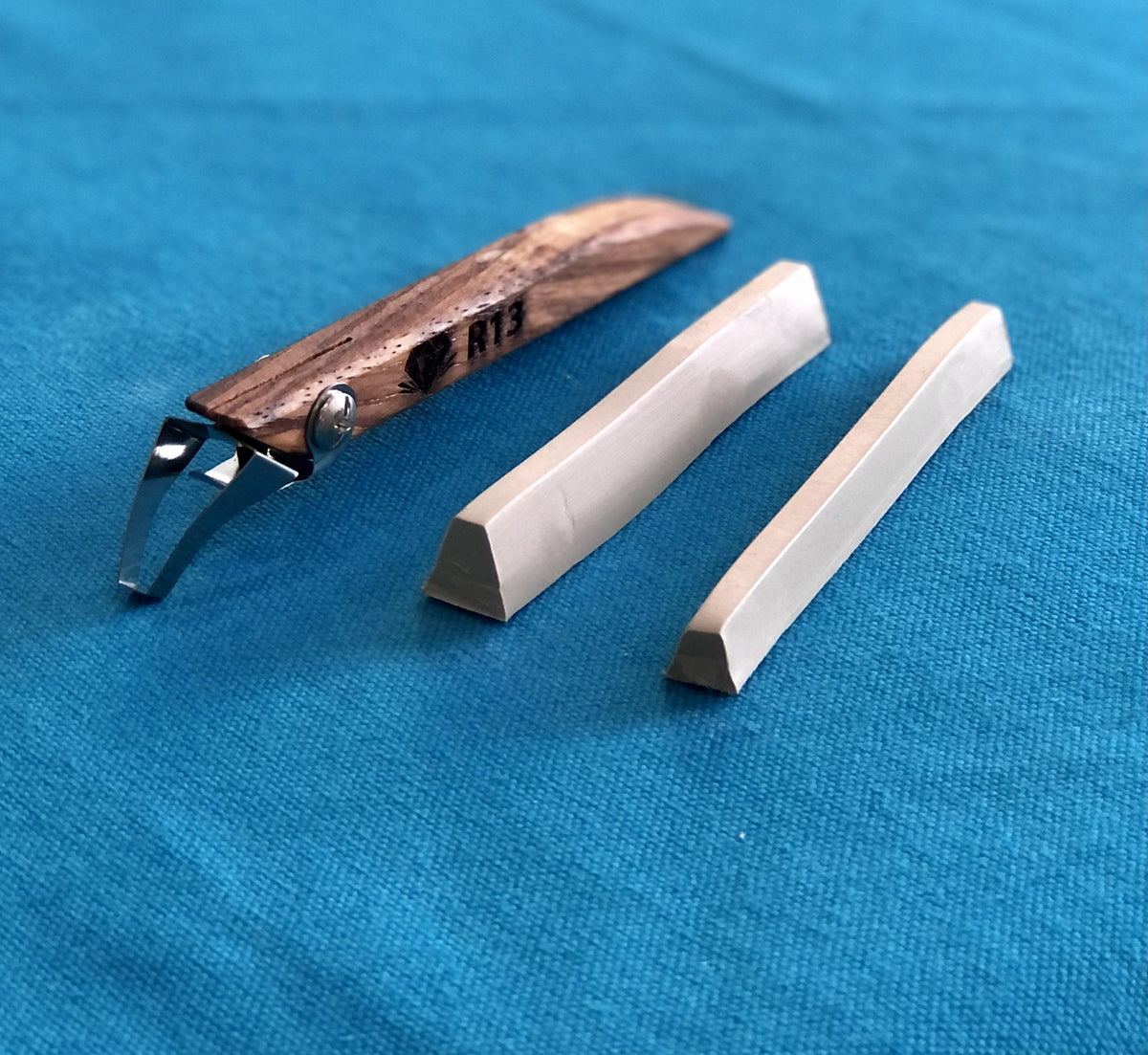 - Angled, stainless-steel blade leaves clean edges and pulls through clay effortlessly