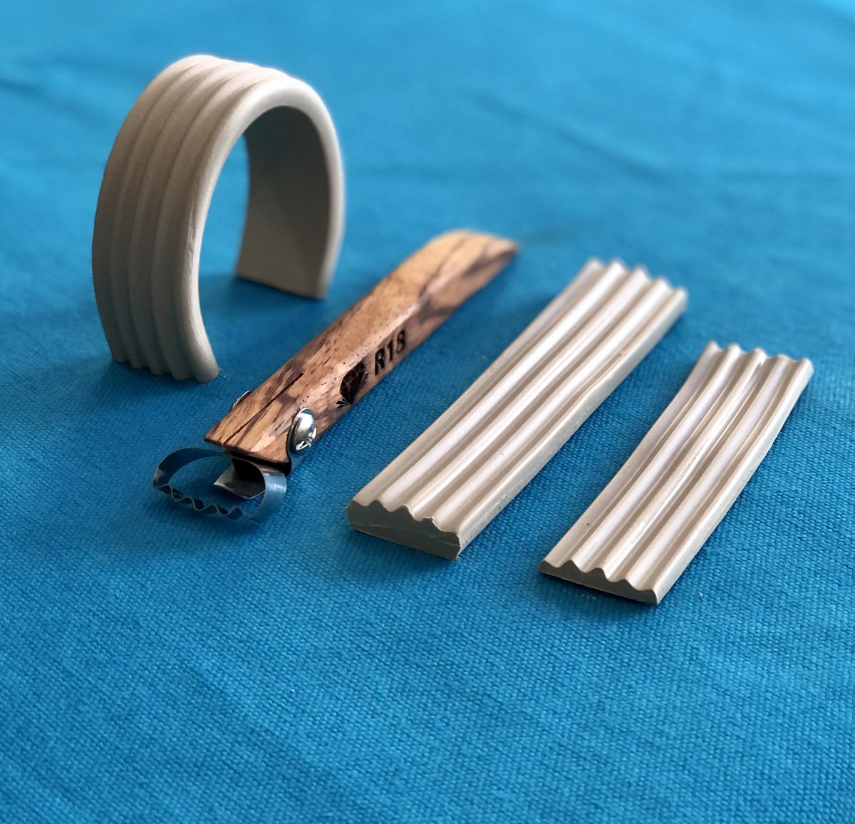 For best results, use these foot and handle-making tools when the clay is not extremely wet or sticky. The clay tool blade should be clean and dry. Ideally, pull the extrusion up and out as it is being formed or fold back the sides of the slab so the extrusion pops up and out.