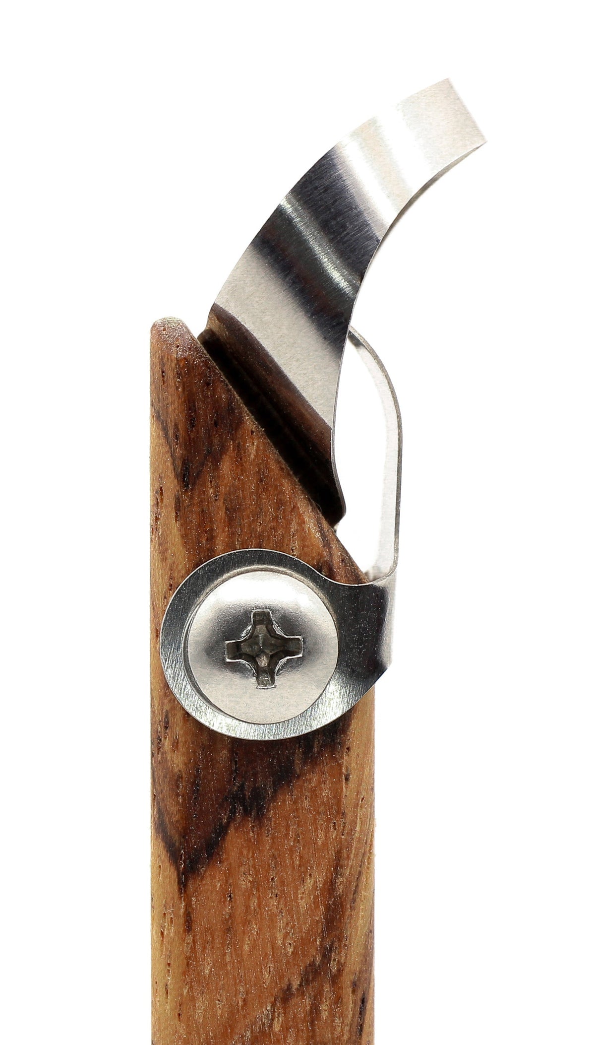- Angled, stainless-steel blade leaves clean edges and pulls through clay effortlessly