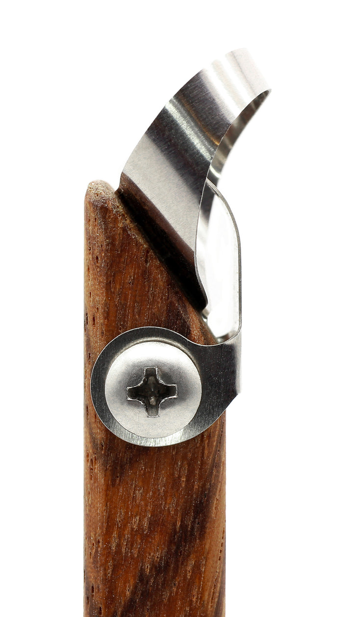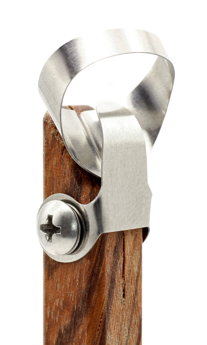 - Angled, stainless-steel blade leaves clean edges and pulls through clay effortlessly