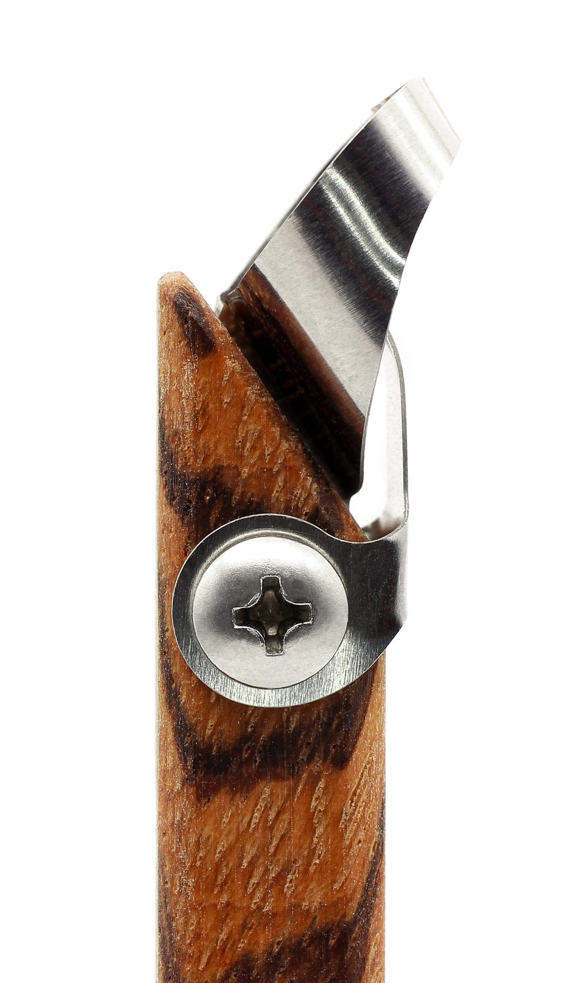 - Angled, stainless-steel blade leaves clean edges and pulls through clay effortlessly