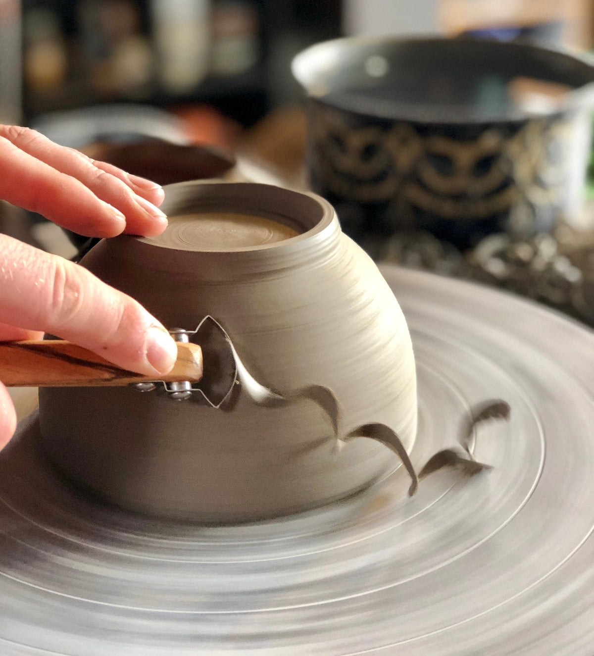 Looking for a pottery trimming tool that's great for carving, shaving, sculpting and scraping? The T2 Arc Pottery Trimming Tool from DiamondCore® Tools is an excellent choice! The unique blade design reduces chattering and allows you to trim from the foot to the rim without flipping the piece you're working on.