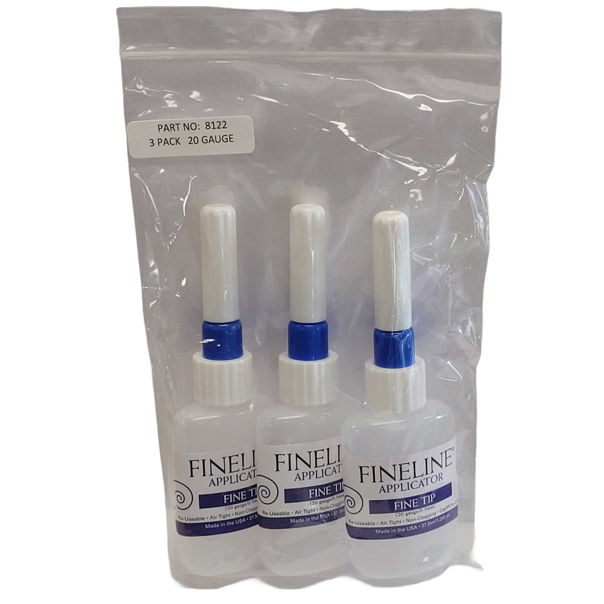 FineLine Applicators are the first precision applicators that use an air-tight non-clogging cap wire closure system to ensure that the applicator and your preferred medium are always ready for immediate use. The Fineline Applicator comes a 20 gauge (.5mm) stainless-steel dispensing tip. The dispensing bottle is an oval 1.25 ounce low-density polypropylene bottle with an 18/410 threaded neck.