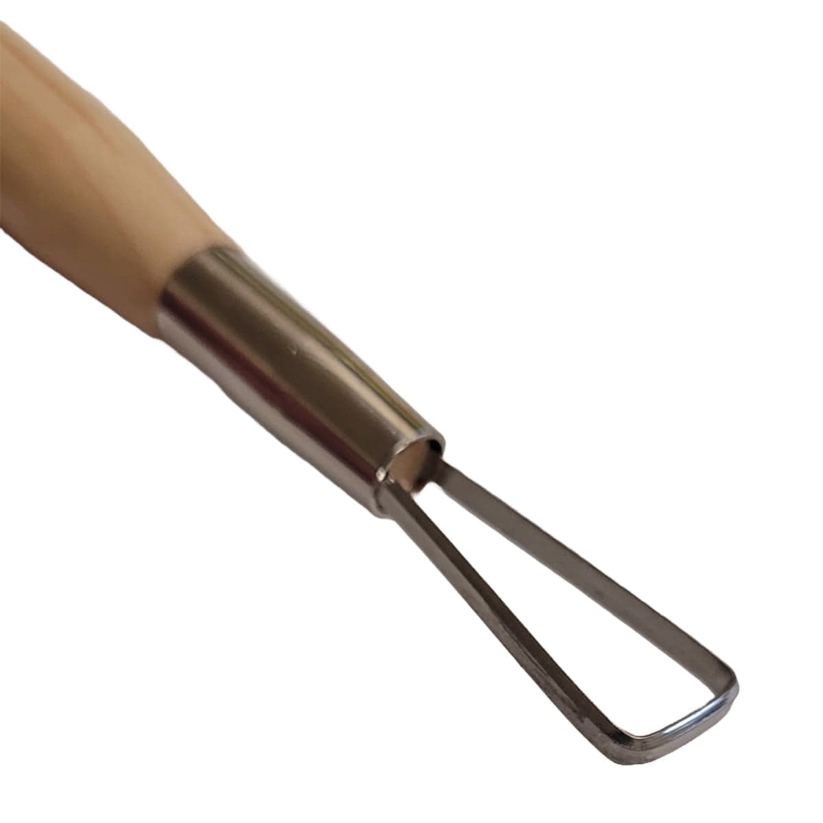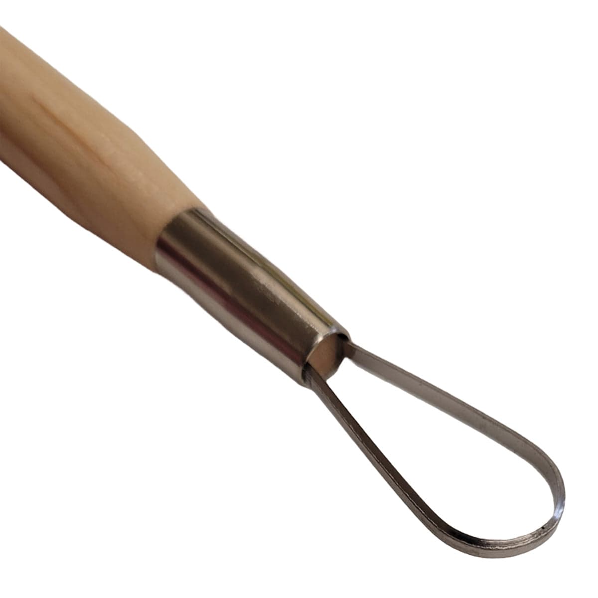 Dual-End Ribbon Tools come in a variety of shapes and are used to cut and shape clay and wax. The ends are made from clock spring ribbon steel and are firmly attached to the hardwood handles with steel ferrules.