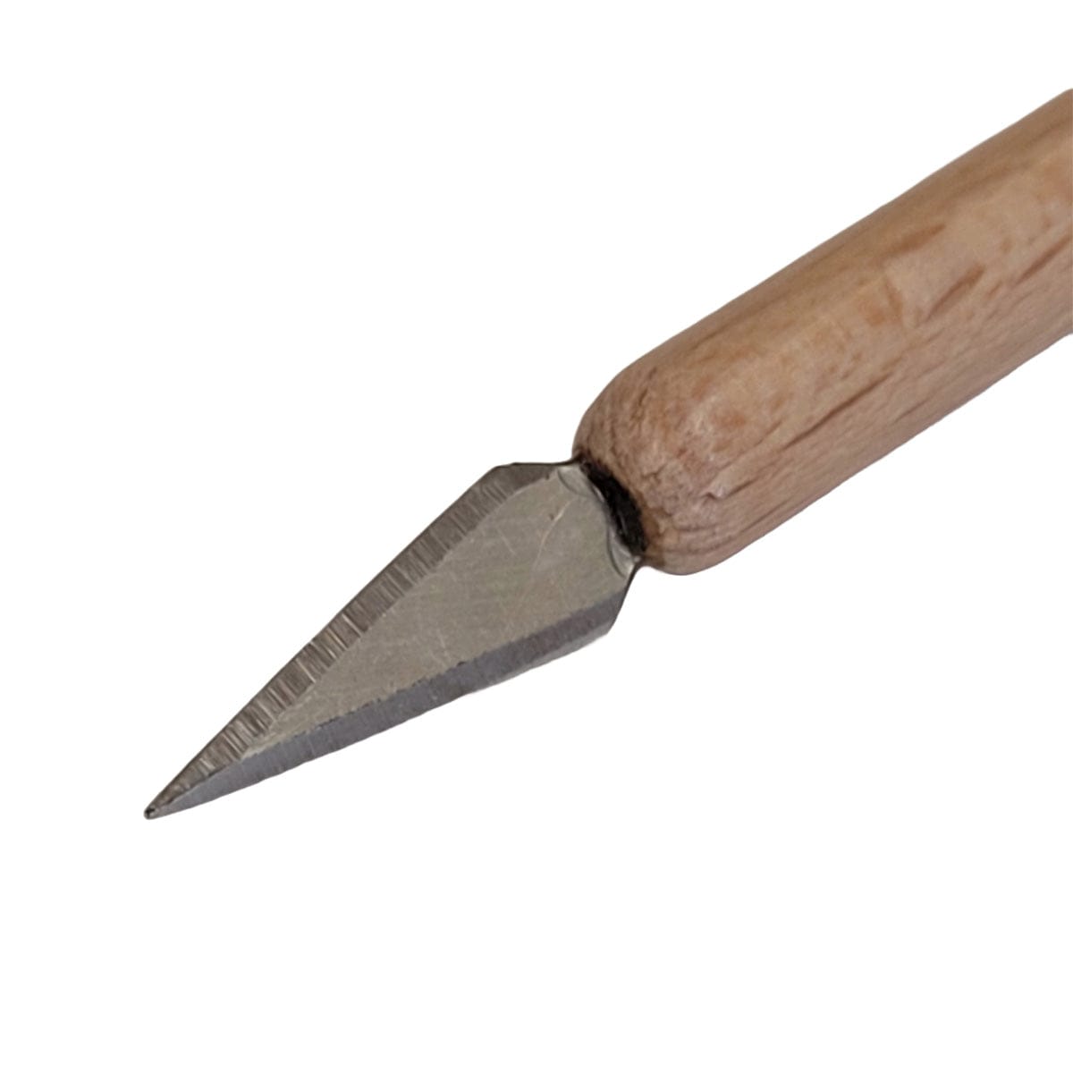 Primarily for removing seam-lines and sharpening details on slip-cast greenware but also well suited for sgrafitto work. Blades are sharp, double-edged stainless steel: this tool has one curved and one flat blade.