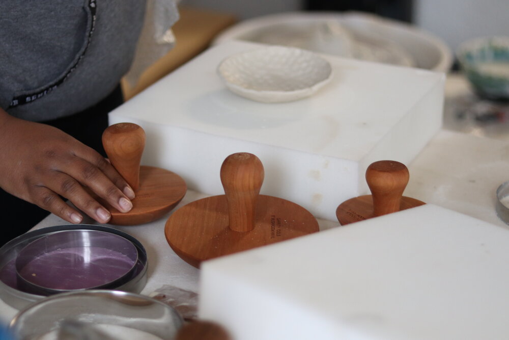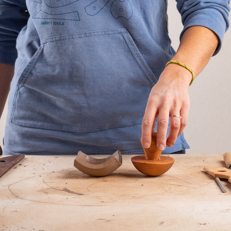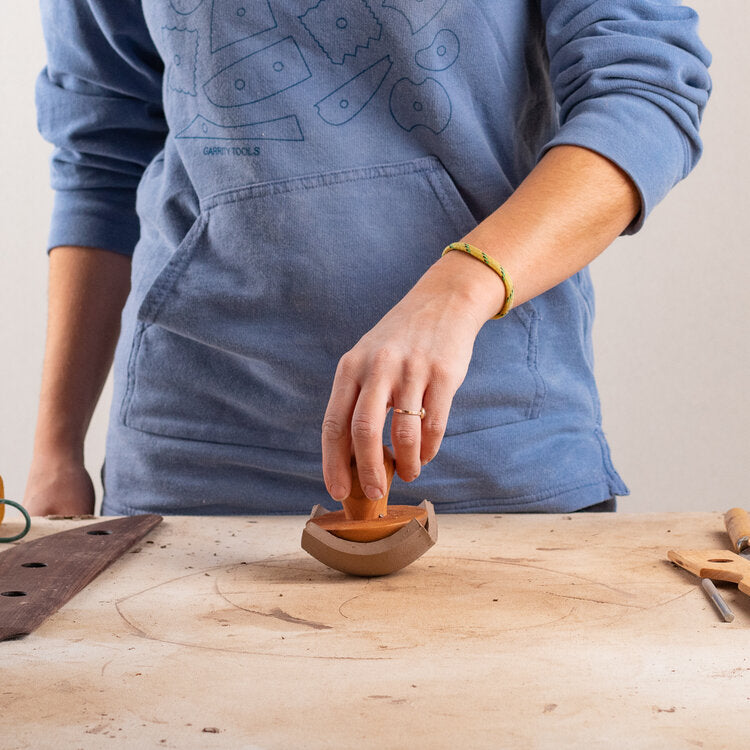Mushroom Anvils are perfectly crafted to fit firmly in your hand and with just enough weight to easily shape a clay slab into a dish. Anvils are threaded to accept a separately purchased removable handle that you can swap between different sized tops.