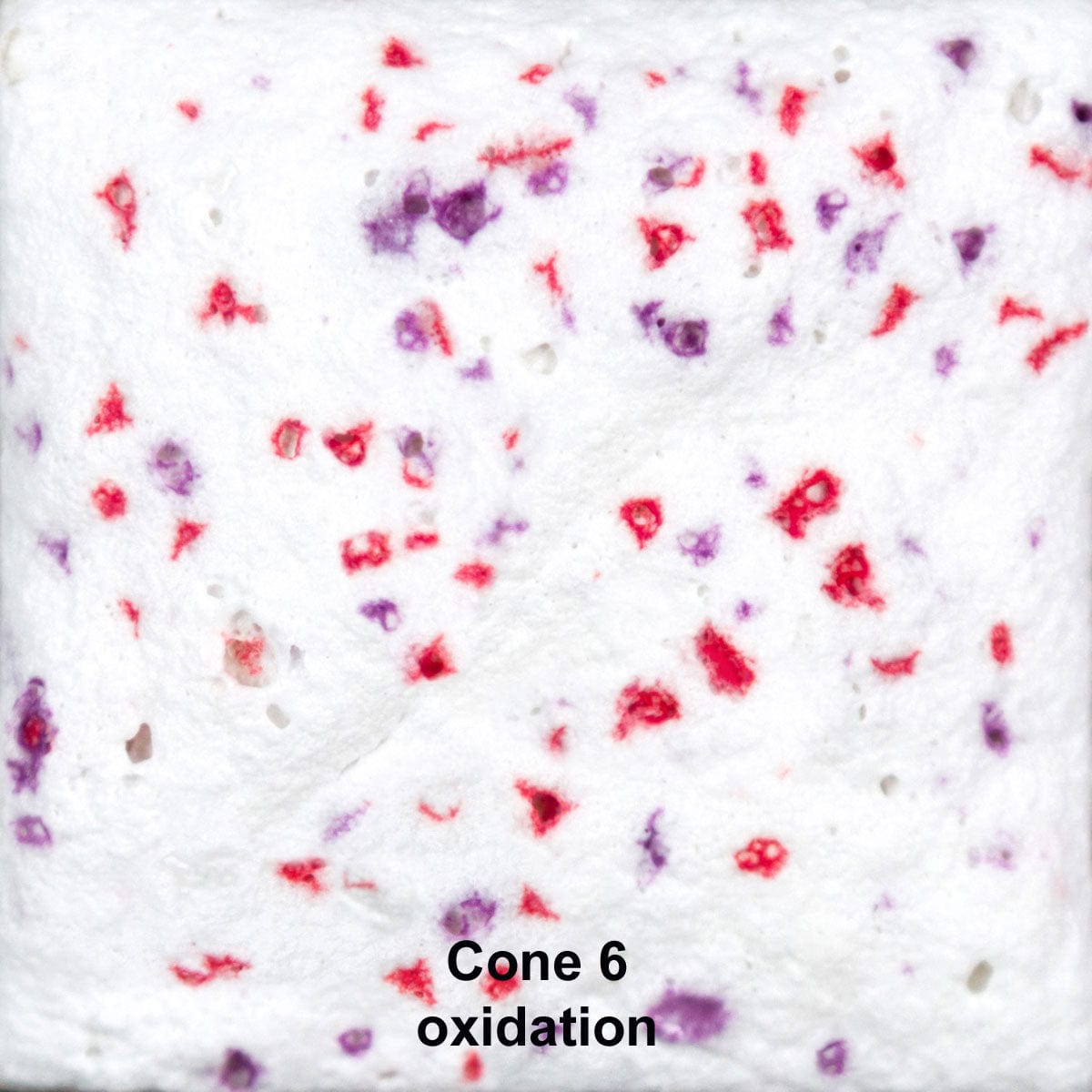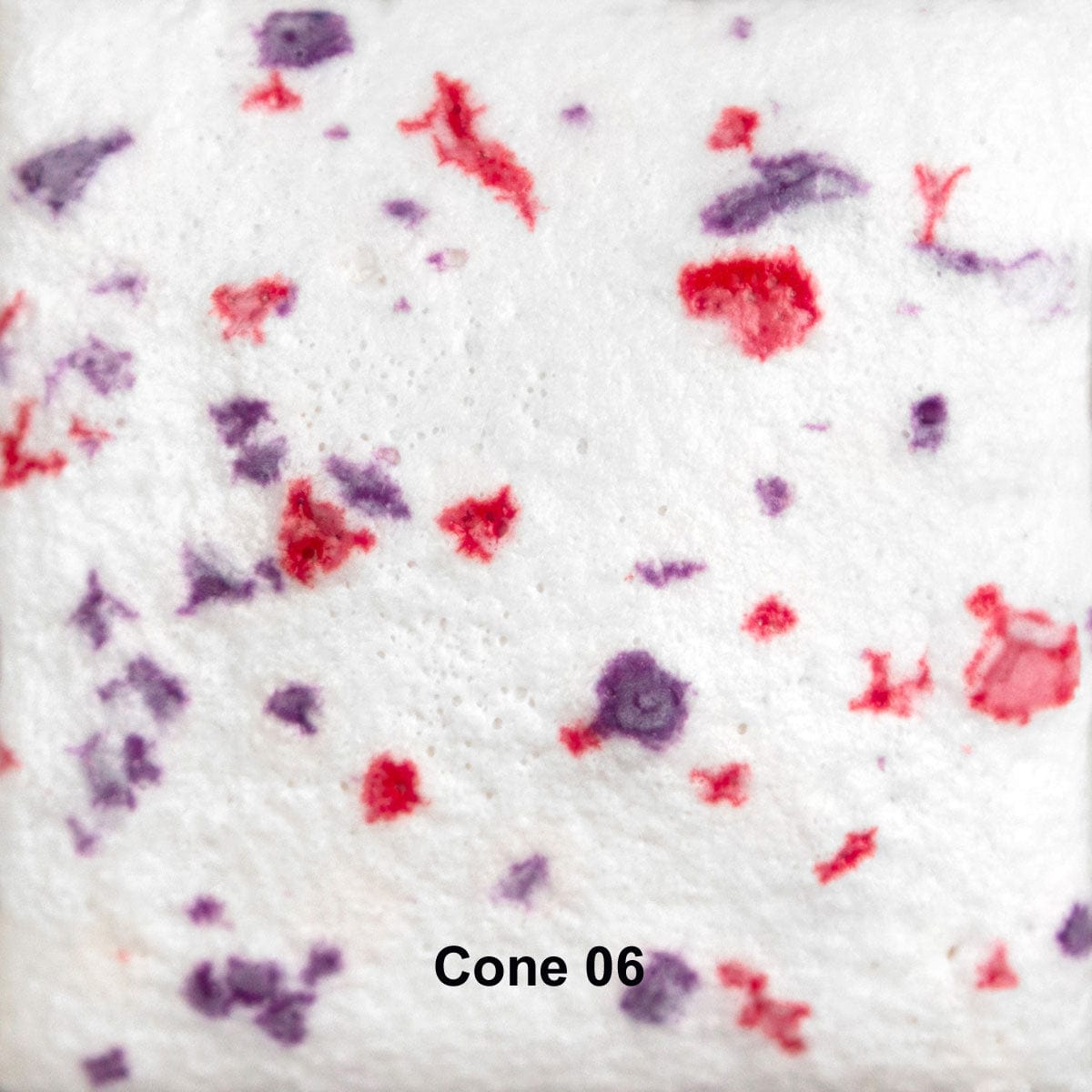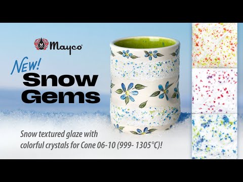 Snow Gems are a dimensional glaze that creates a white, textured surface with colored crystals. It is a non-moving glaze that can be applied using a brush or palette knife to create various textural effects and accents in your design work. Snow Gems have a wide firing range of cones 06-10 (999°C-1305°C / 1830°F-2381°F).