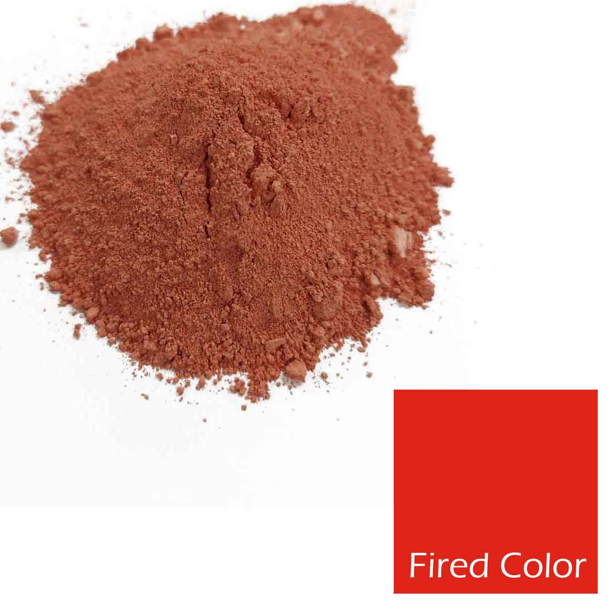 The 'fired color' swatch represents the stain color when mixed with water, brushed across a tile, and fired to cone 5.