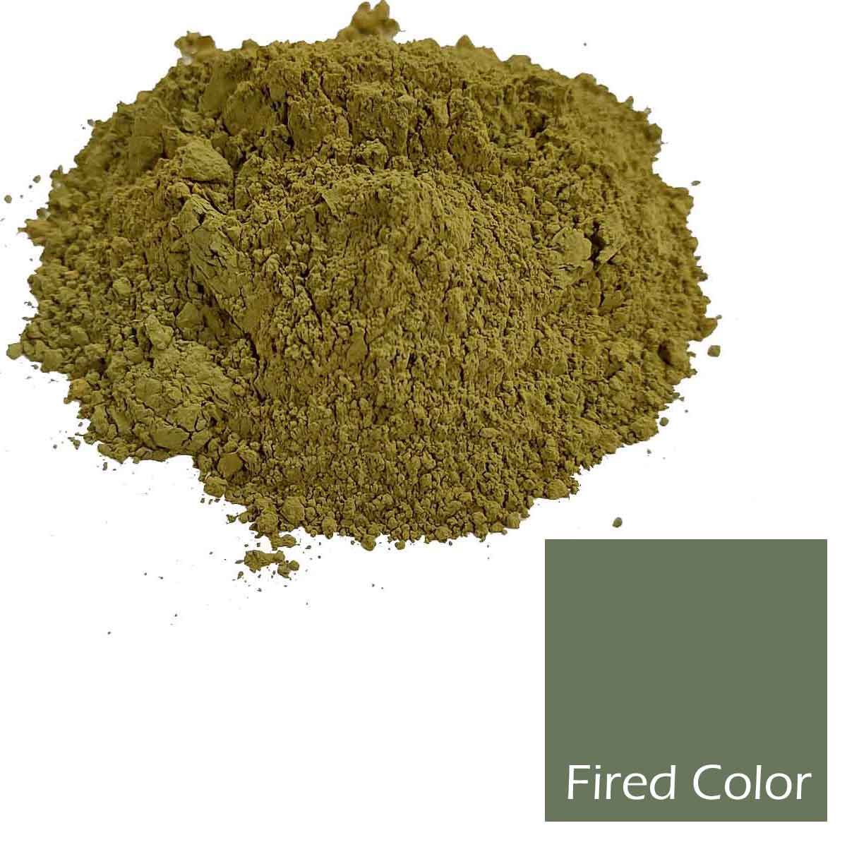 The 'fired color' swatch represents the stain color when mixed with water, brushed across a tile, and fired to cone 5.