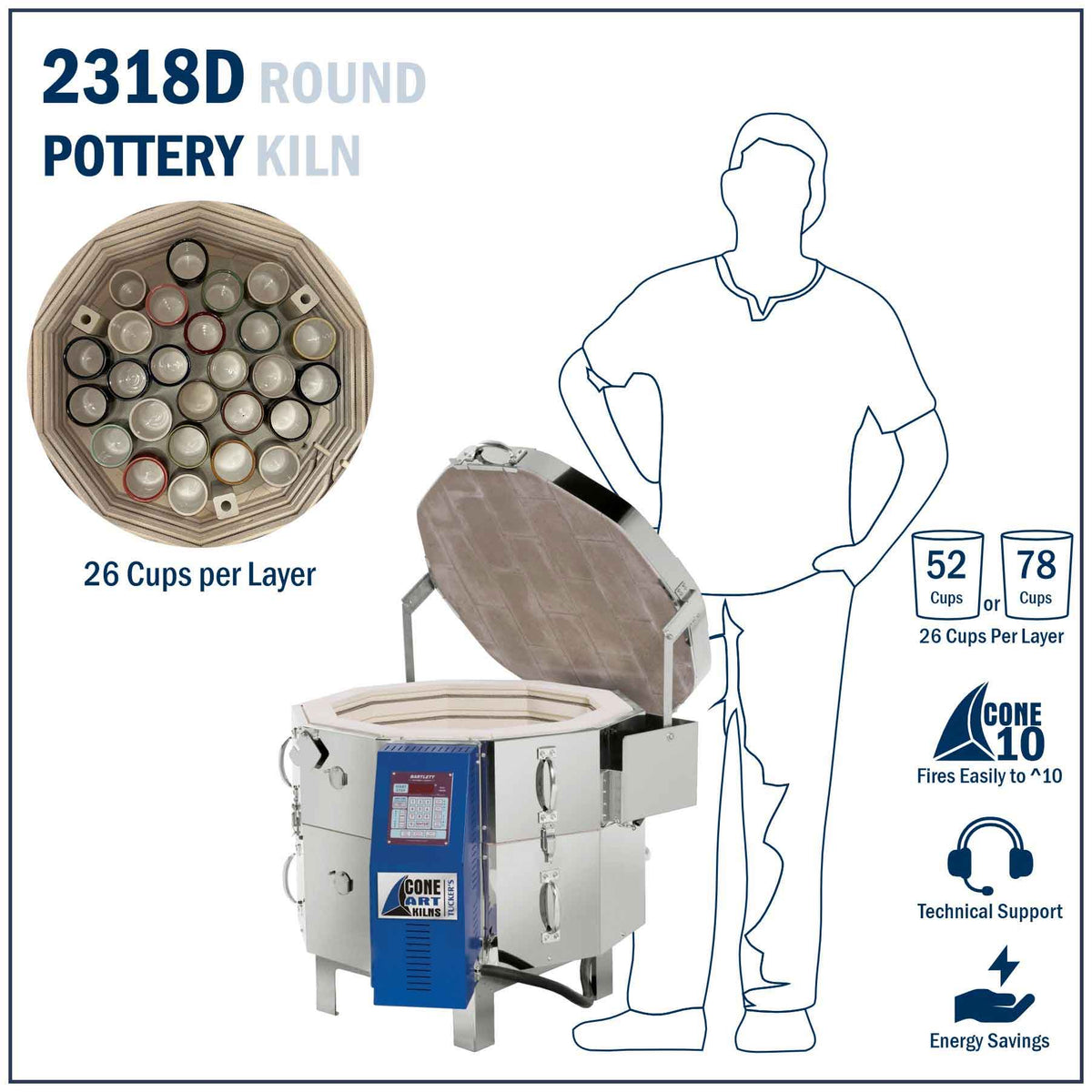 The Tucker’s Cone Art Kiln model 2322D offers all the power of a 2822D in a marginally smaller package with a height that makes it a little bit easier to reach the bottom.