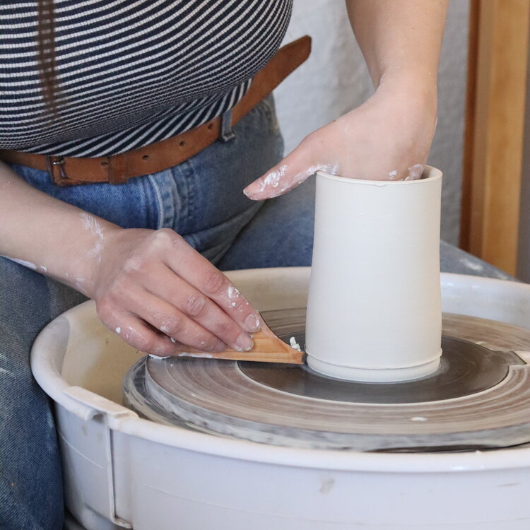 Foot 8 features a simple curve that leads into the footing tool on one end and a taller straight edge with a footing tool on the other end. The flat bottom of this tool allows you to steady it against your bat while the small cutouts at the ends create a rounded foot at the base of your vessel while it's still spinning the wheel. Our foot tools also make great ribs as you can use any side of them to help pull, smooth, and shape your clay.