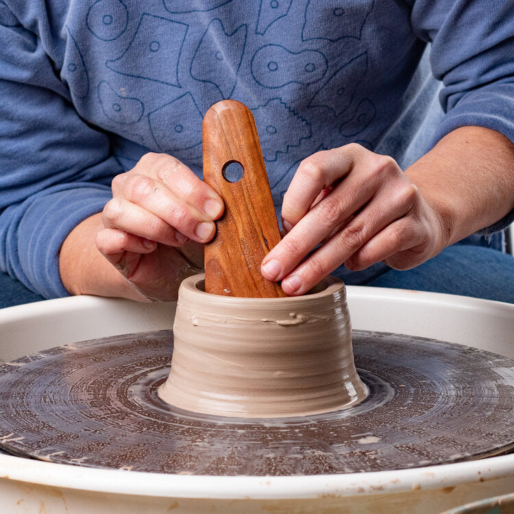 The simple straight lines and curved ends of I1 make it versatile for throwing a multitude of projects on the wheel or for sculpting by hand. Its symmetry and two distinct diameter curves on the end make it versatile and easy to use.