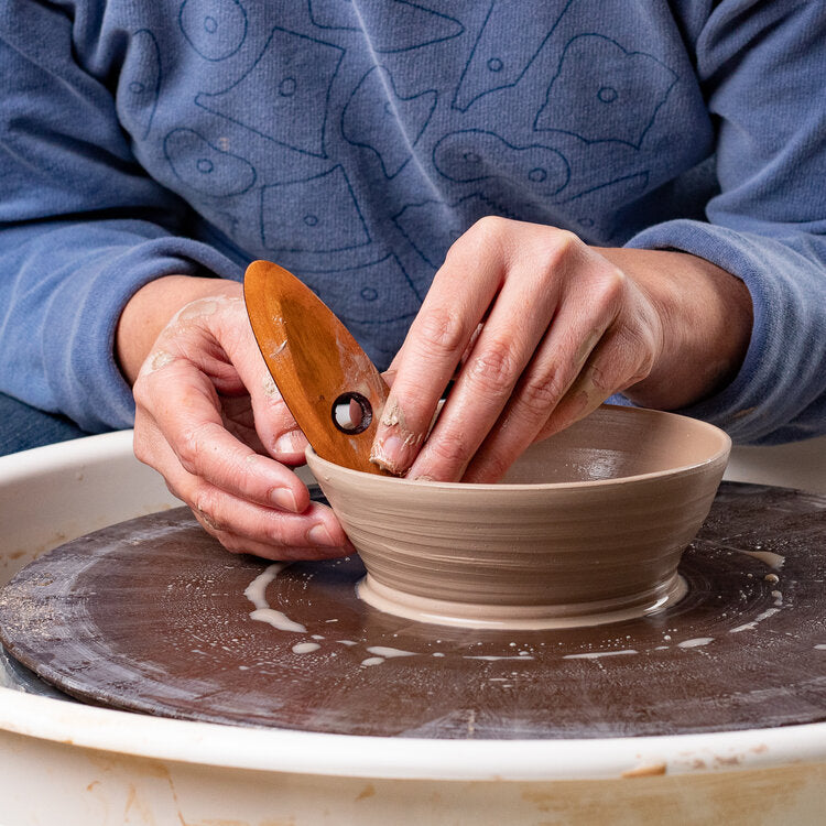 O6 is a slender tool that works great on the insides of bowls and plates. With no sharp edges, this tool is perfect for smoothing and shaping.