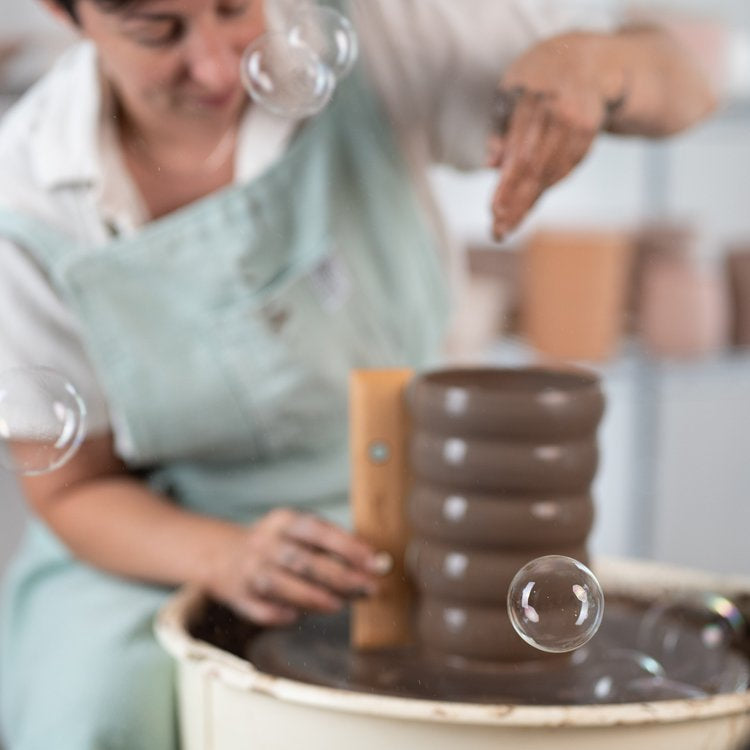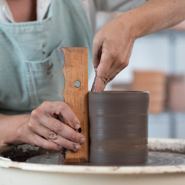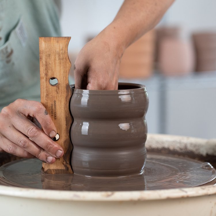 This tool is a whopping 7.75” tall to help you bring a consistent texture all the way up your tall mug, vase, bowl, and more. With Profile 1 you can add the ever-popular bubble profile to any vessel again and again, getting it exactly the same every time. Use the flat side of this tool to straighten and prep your cylinder for shaping. Then, flip the tool to the wavy side and seamlessly add bubble after bubble to your piece.