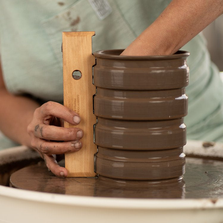 This tool is a whopping 7.75” tall to help you bring a consistent texture all the way up your tall mug, vase, bowl, and more. With Profile 3, you can add a clean geometric pattern to any vessel again and again, getting it exactly the same every time. Use the flat side of this tool to straighten and prep your cylinder for shaping. Then, flip the tool to the textured side and seamlessly add this unique texture to your piece.