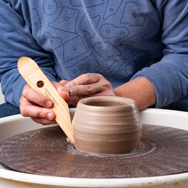 The scooped end of the Thumb Tool allows you to use it instead of your actual thumb when hand-building. Pressing seams, shaping slabs, or even trimming a pot on the wheel, this tool makes light work of any ceramic project.