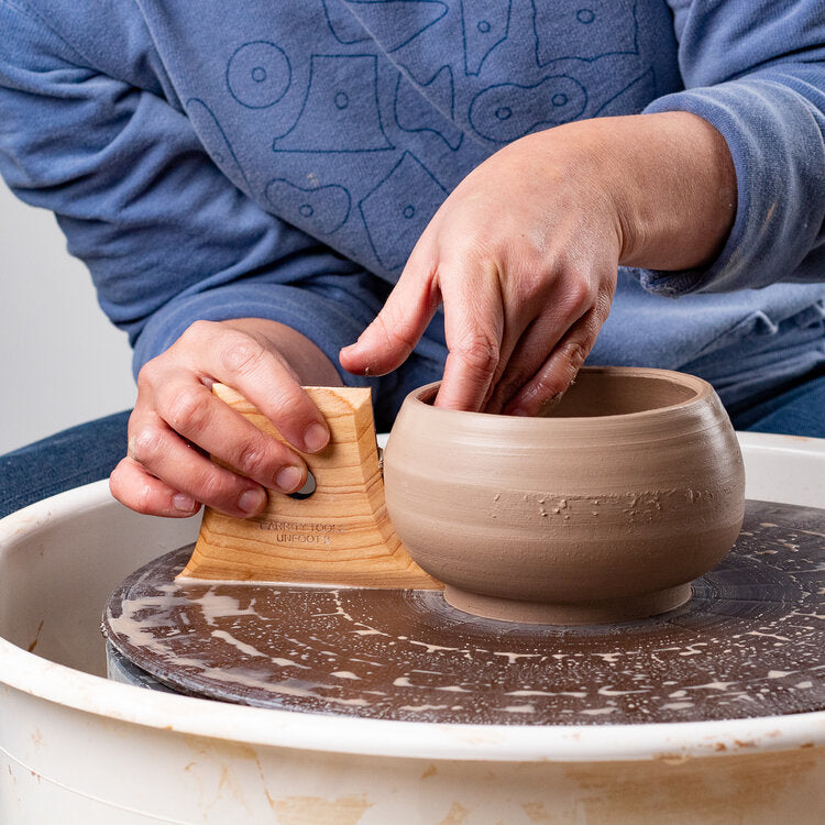 Unfoot 2 provides a simple way to give your vessel a bit of a lift. With curved sides that end in a point on one corner and a small flat edge on the other, you can undercut your clay while maintaining the shape of your walls. This tool will save you tons of time that you might spend trimming later.