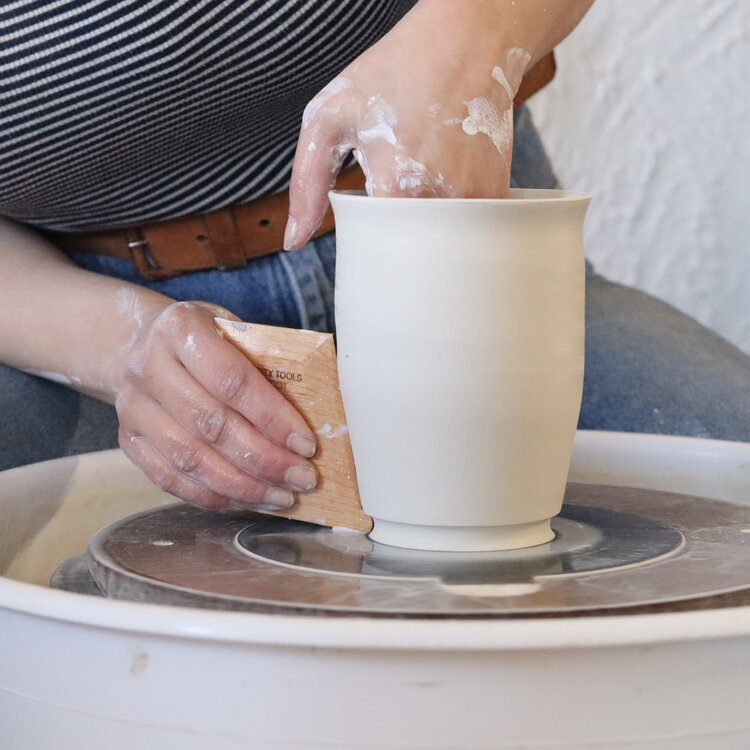 Unfoot provides a simple way to give your vessel a bit of a lift. With a point sticking out from one corner and a curve from the other, you can undercut your clay while maintaining the shape of your walls. This tool will save you tons of time that you might spend trimming later.