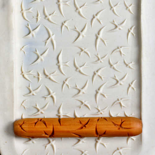 HR HandRollers are deeply carved, have unique designs, and release well from clay and any soft medium. MKM rollers are made from wood that is precision carved to make deep beautiful impressions. The rollers are also beveled carved, allowing them to release easily from clay. You simply roll the HR roller with your hand across the clay or up the wall of a pot to create a beautiful pattern. Because of their smaller size and light weight, HR rollers are perfect for rolling vertically up the walls of a thrown pot. HR rollers also work great on slabs. The ends of the rollers are rounded to avoid a line along each side of the pattern. This allows patterns to blend. For long rolls, the MKM Roller Board can help create long smooth rolls and avoid knuckle bumps. MKM rollers are finished with tung oil to ensure durability over many years of use. MKM tools are easily cleaned with water and a soft toothbrush.