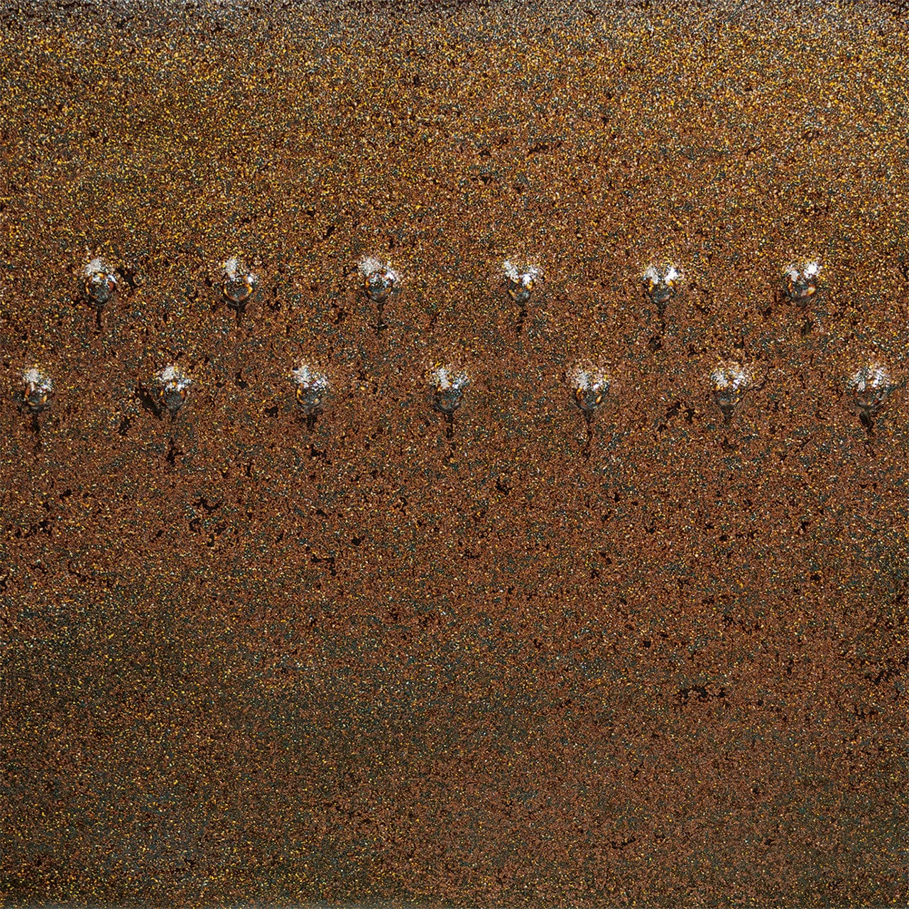 PC-69 Cosmic Gold Dust is a sparkly gold glaze with subtle specks of reds and browns in the light.