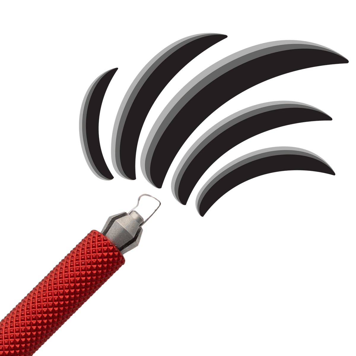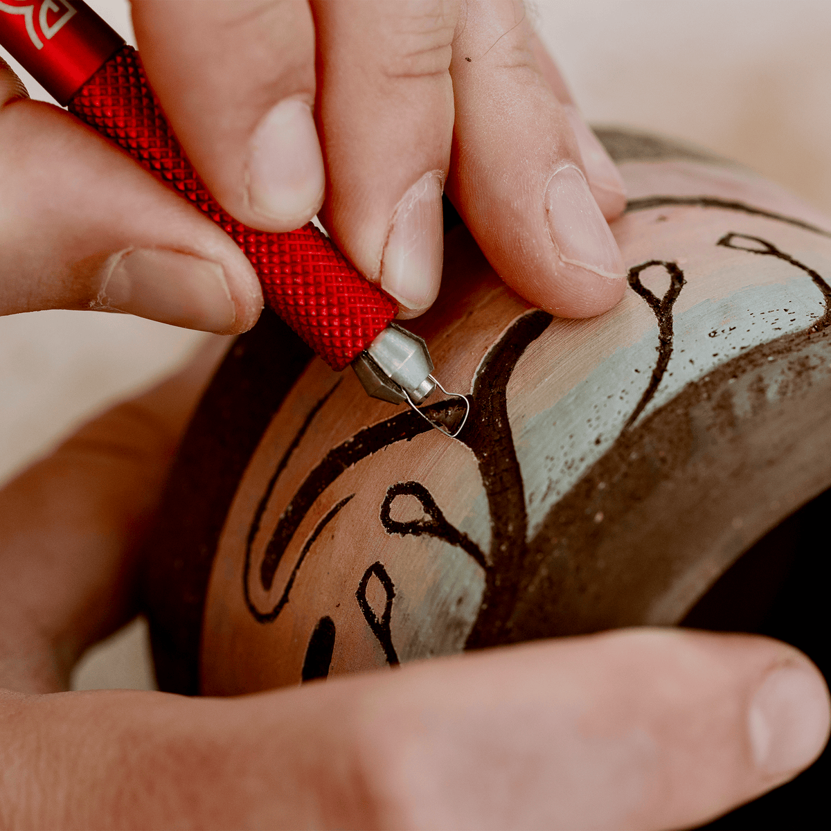 The medium P-shaped blade is unique and highly versatile for both sgraffito and relief carving. It can be used in many of the same ways as a chisel blade, but its flatter top allows for even more feathered, tapered grooves and smoother, wider surface removal depending on the area you’re working on.