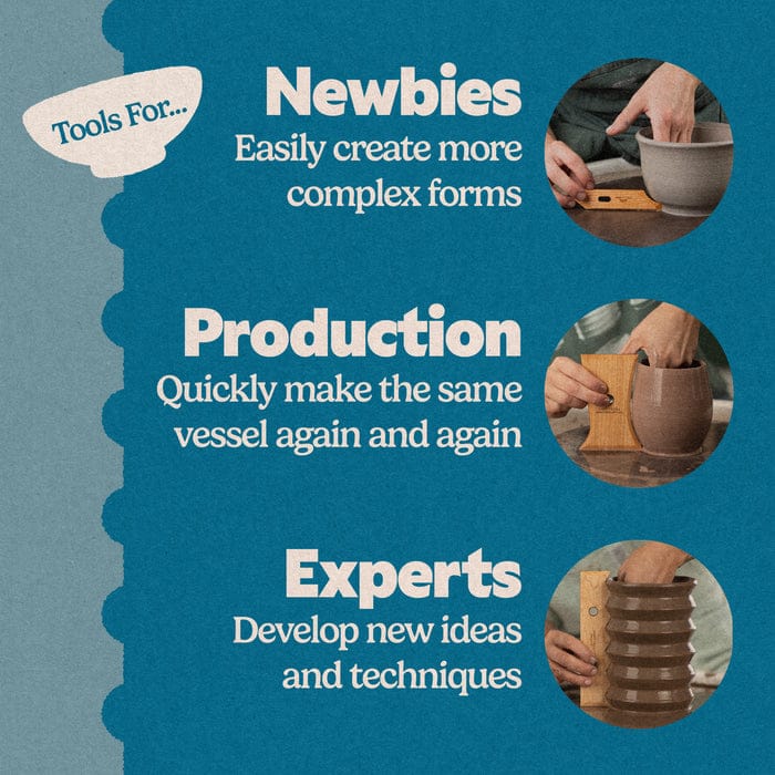 Shout-out to potter Adam for the original request for these in 2023. Follow along with Adam on Instagram @adamceramic to see him use our tools on his teeny tiny wheel.