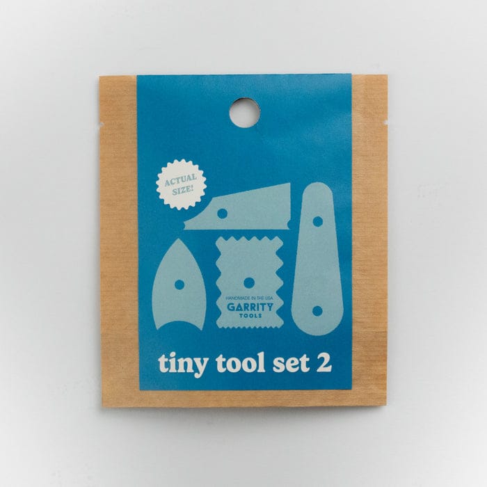 This mini tool set includes a small Foot 8, I1, Texture 8, and S2. They come sealed up in an adorable (and recyclable) bag! You can use these tools on a small wheel or when you’re throwing off the hump to make tiny vessels. They come in handy for centering, adding texture, refining form, and straightening up sides.