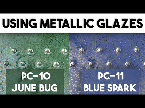 June Bug is a glossy, dark green metallic glaze that develops small triangular iridescent crystals, like the wings of a beetle. This opaque glaze does not break over texture. For best results apply three even brush coats. Glaze may run.