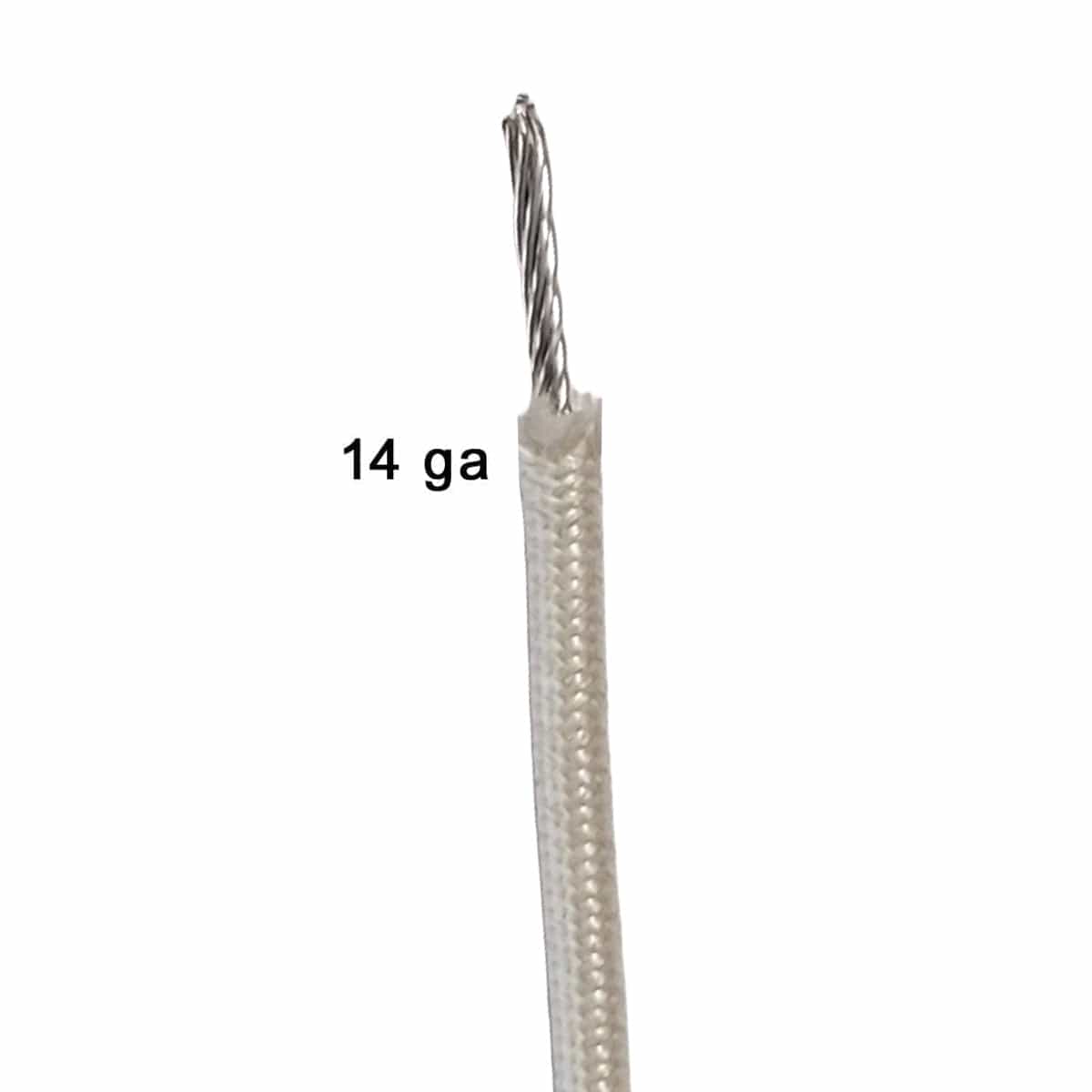 12 or 14 gauge, high temperature, Teflon treated glass is UL and CSA approved. Made out of nickel plated stranded copper. Used for internal wiring of all electric kilns.