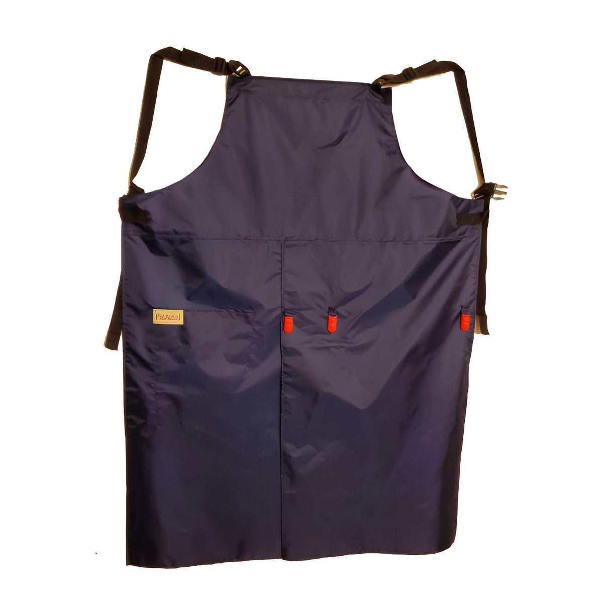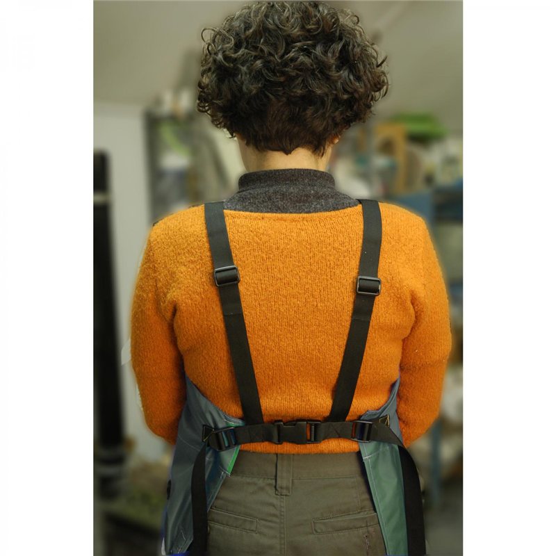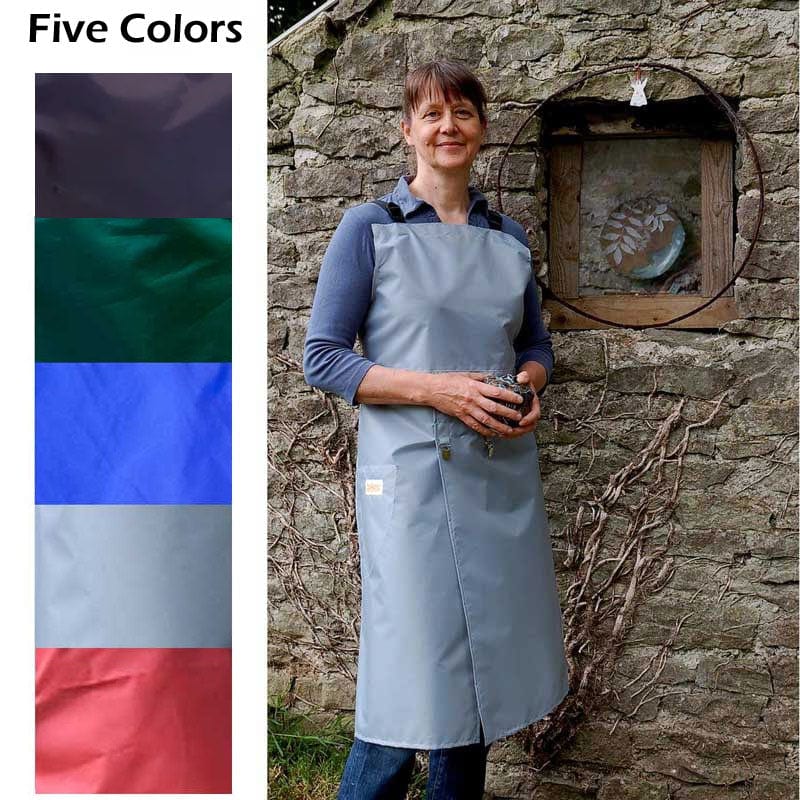 PotAprons are made of light, water-resistant, durable materials. The straps are fully adjustable, and a clever clip design means that you have the advantage of secure crossover straps without the hassle. The split-leg design allows you to sit comfortably at the wheel while potting, with legs properly protected from clay and moisture. There is a deep pocket to the right and a towel can be attached to the left. Towels are secured by three clips for easy removal and replacement. After a day at the wheel PotAprons can be wiped clean or rinsed. They dry quickly. No more intensive drying overnight or that feel of a still-damp apron in the morning!