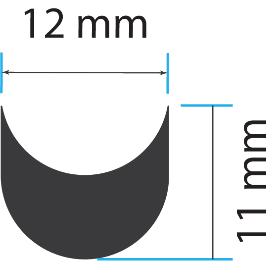 - Impression tip: approximately 12 mm-wide rounded endpoint