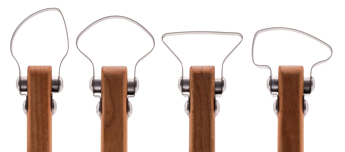 DiamondCore's new 4-Piece Extra-Large Trimming Tools Set 1 is ready for you when you're ready to move up to big-time shaping and smoothing! This DiamondCore Tools set features the first four of our new extra-large trimming tools designed especially for working on the wheel with larger ceramic pieces. Their unique blade shapes let you remove more material across larger surfaces with ease.