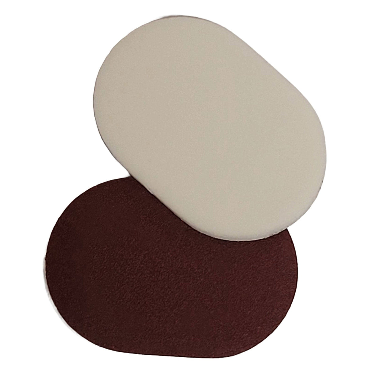 Sanding pad with a semi rigid foam center. Two different sanding grits are on each side, 220 and 100 grit on the other. Great for sanding both greenware and bisque.