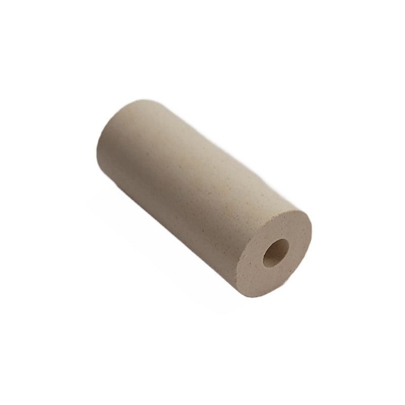Porcelain insulators are used to isolate the twisted element pigtail from the metal body of the kiln. This insulator fits all Olympic kilns.