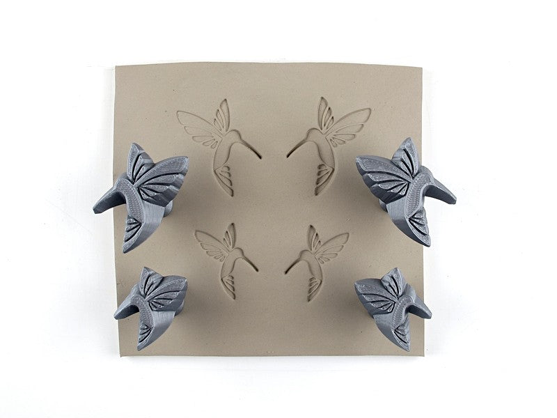 - 4 stamps of hummingbirds in two sizes, two facing left and two facing right made from ecological bioplastics.