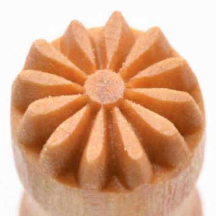 Scs stamps are 1.5 cm in diameter and 5 cm long. MKM stamps are beautifully carved, have unique designs, and release well from clay or any soft medium. MKM stamps are made from wood that is precision carved to make deep beautiful impressions. The stamps are also bevel carved, allowing them to release easily from clay. The Scs stamps are finished with tung oil to ensure durability over many years of use. These stamps are easily cleaned with water and a soft toothbrush.